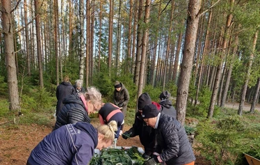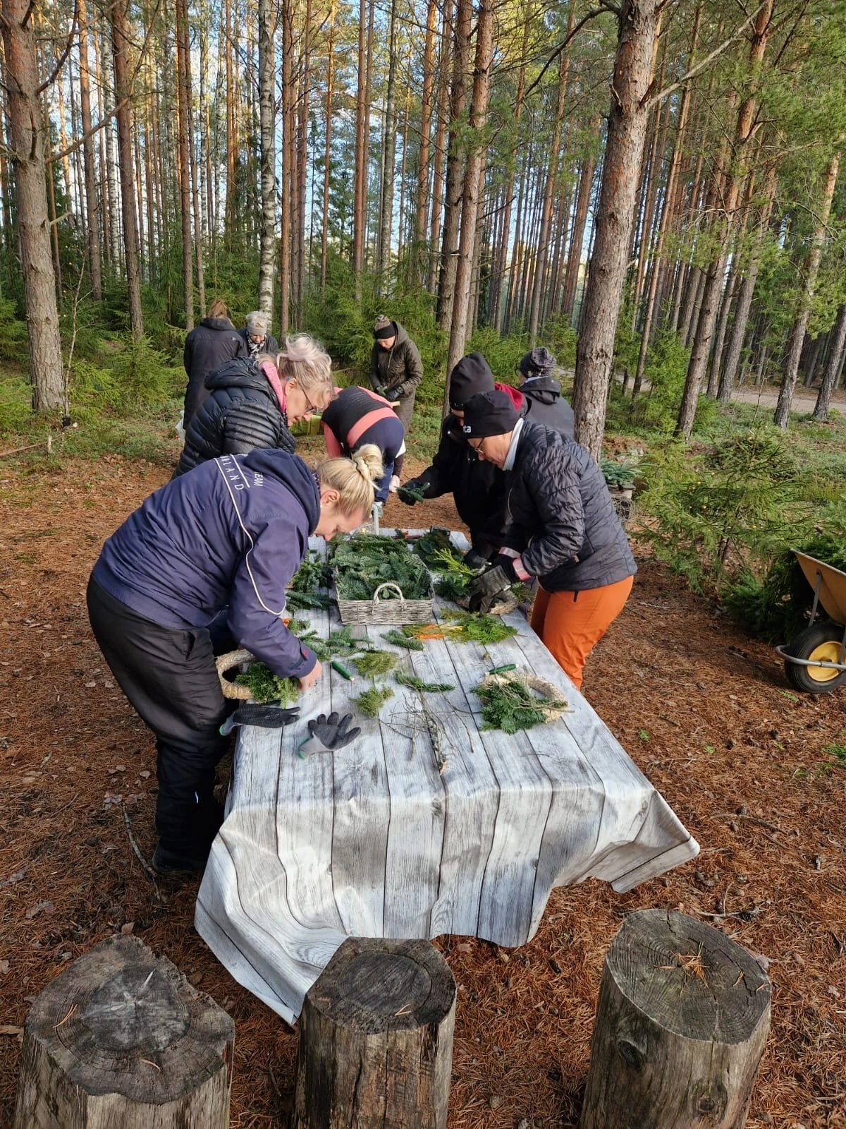 Voit ottaa mukaan käsineet (nahkakäsineet toimii parhaiten kranssin teossa), kertakäyttöhansikkaita on saatavilla.